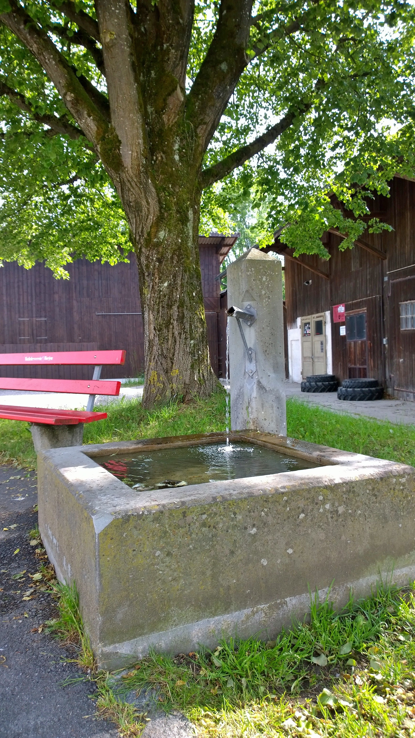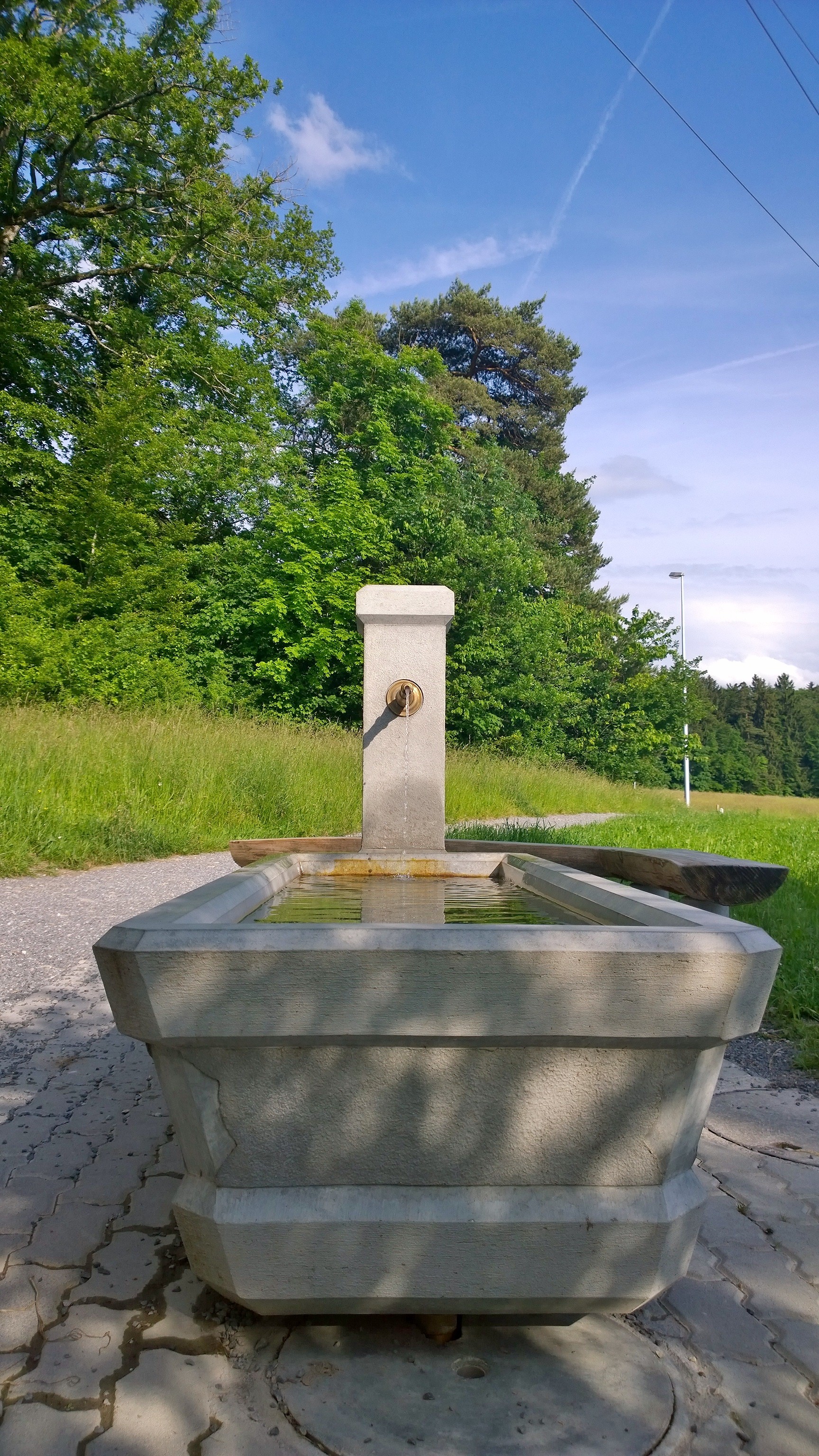 Beim Parkplatz beim Vita Parcours erwartete mich eine schöne Überraschung: Ein Brunnen! Mein Erlöser-Brunnen! Frei zugänglich und mit richtig viel frischem Wasser.