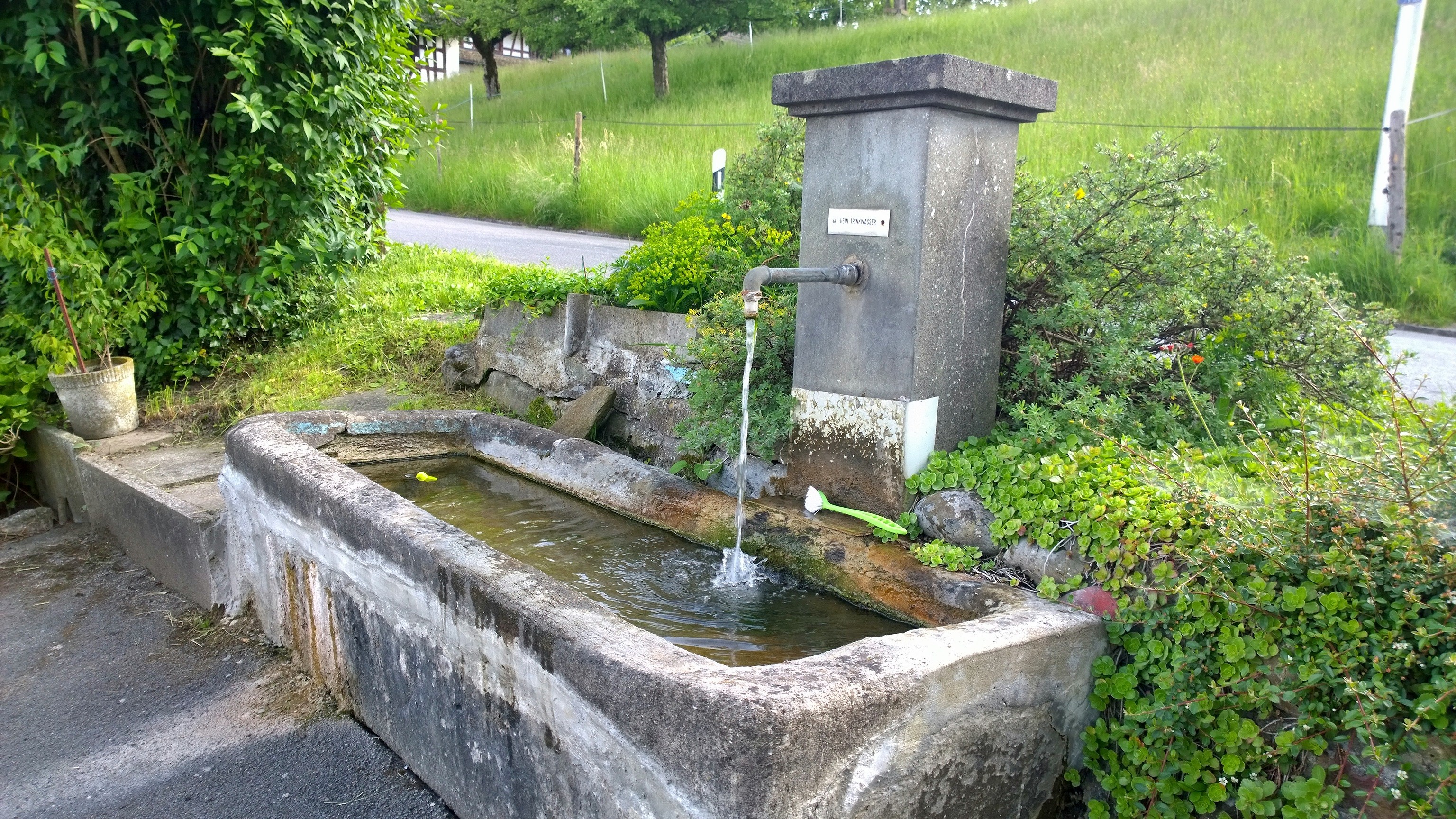 …Oh! Kein Trinkwasser??? Wie jetzt? Ich bin doch immer noch in der Schweiz? Gibt’s hier Brunnen, aus denen „Kein Trinkwasser“ fliesst? Ach was, nur den einen hier in Horgenberg? …wie schön. 😦